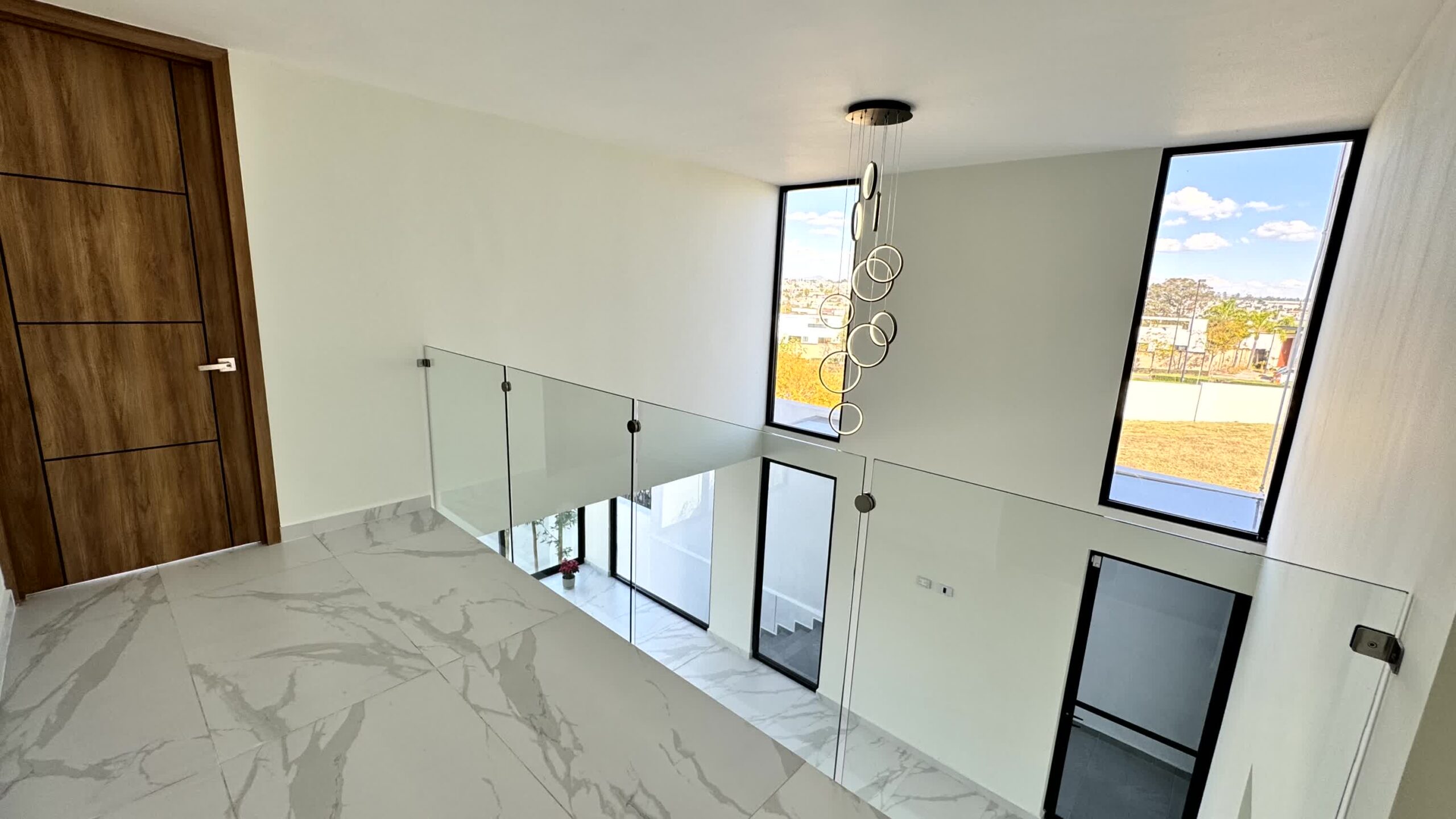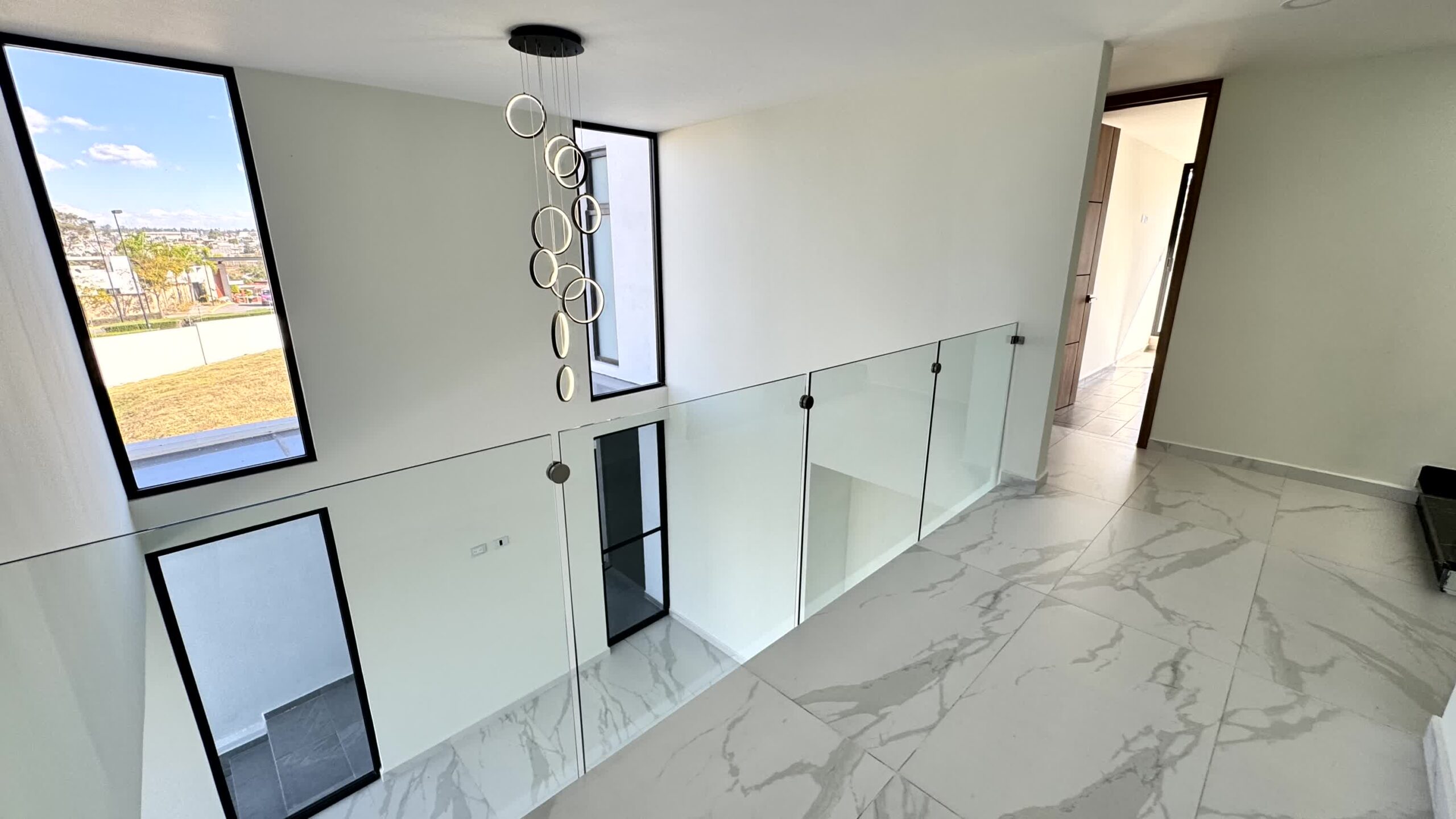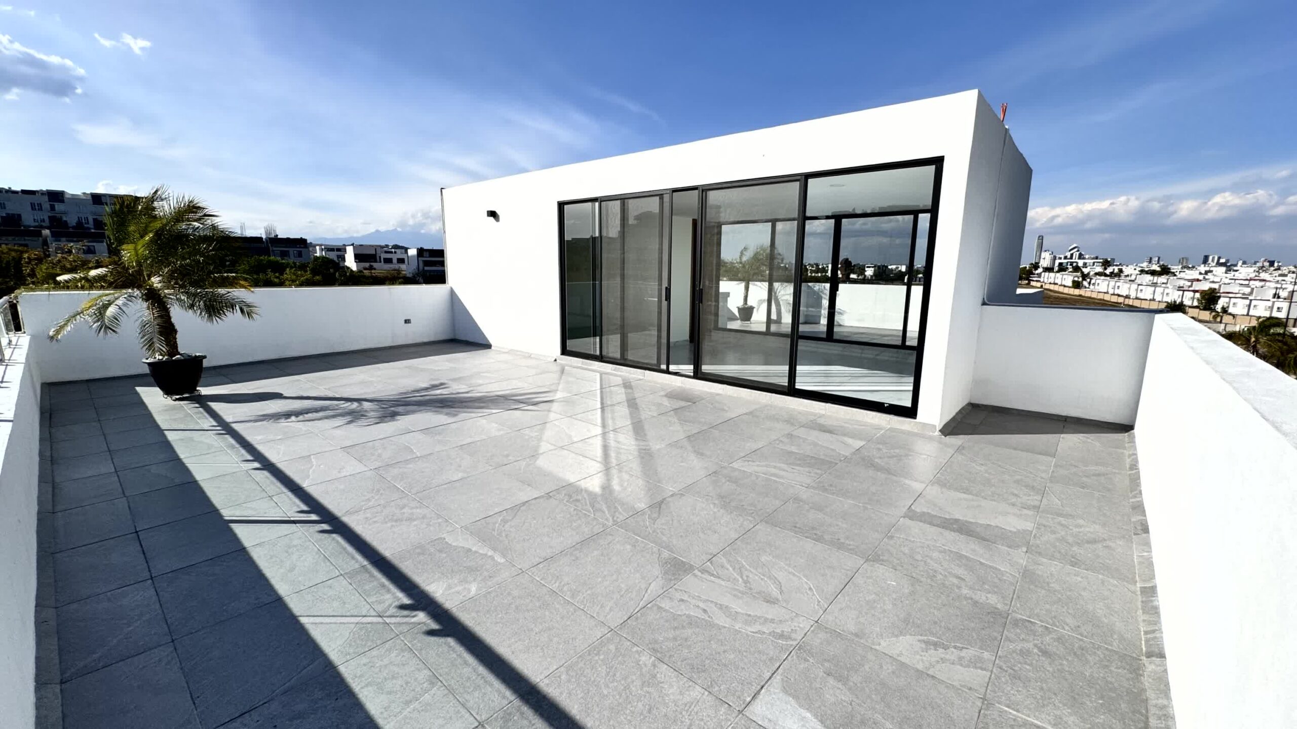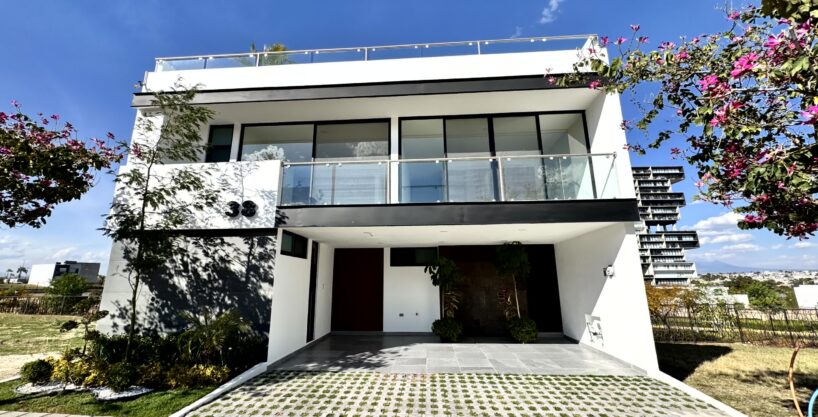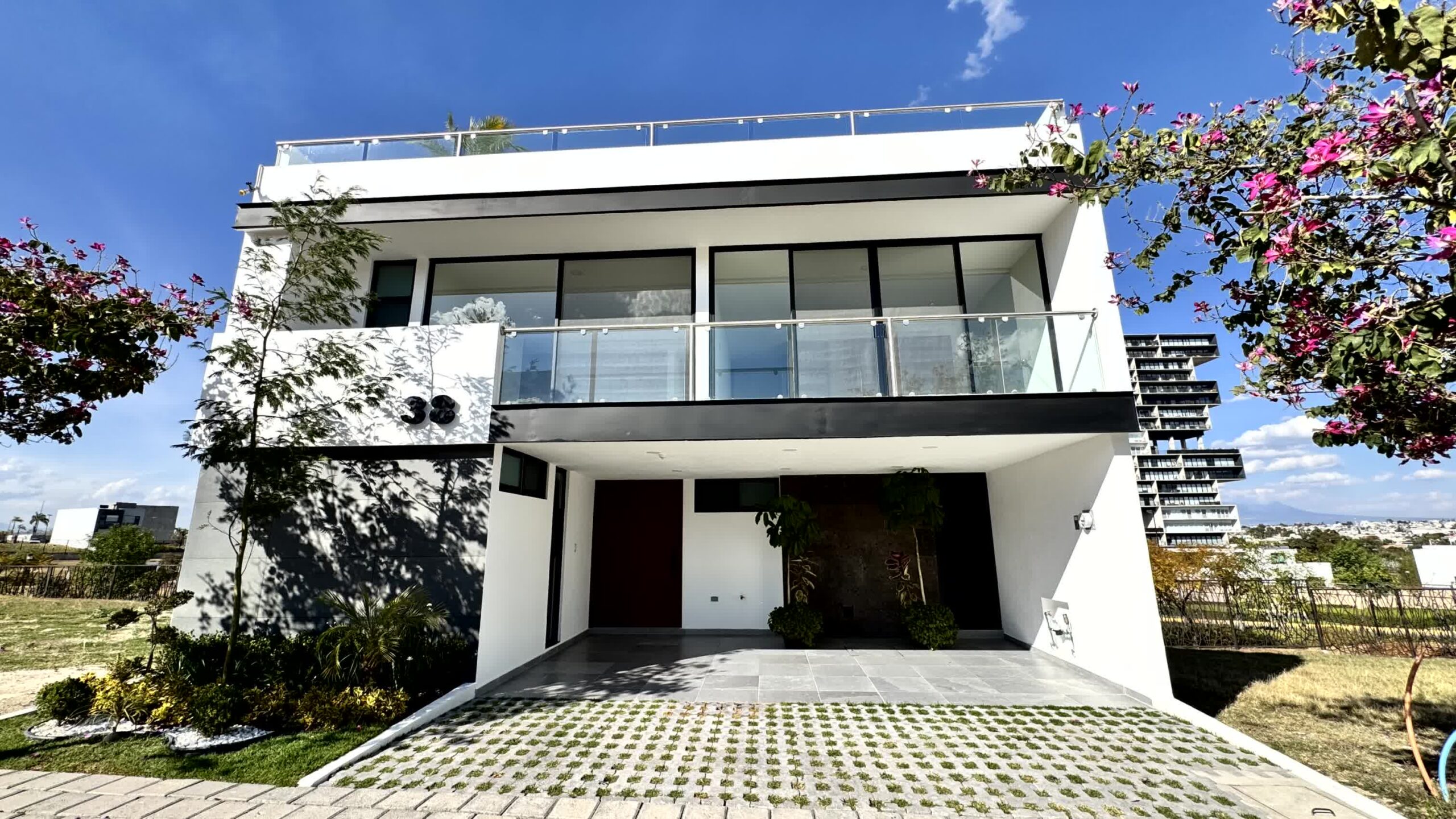 Esta casa tiene un diseño increíble y cuenta con sala doble altura, comedor, jardín, cuarto de lavado, 4 recámaras (una en PB) y cada una con su baño, en total 4 baños y 2 medios baños, cochera para 2 autos y un roof garden doble.
