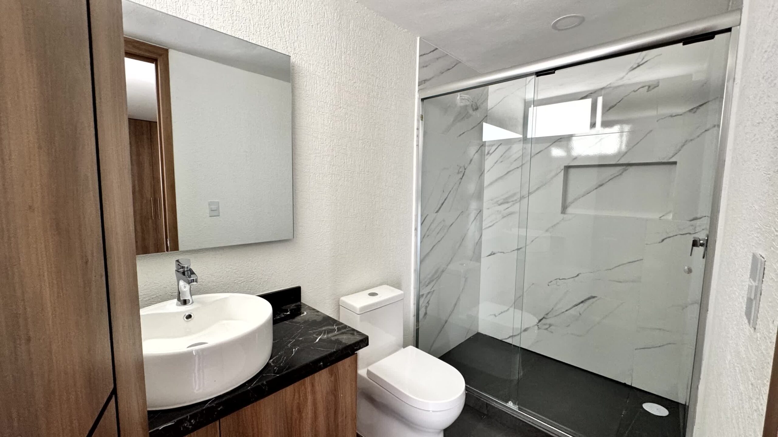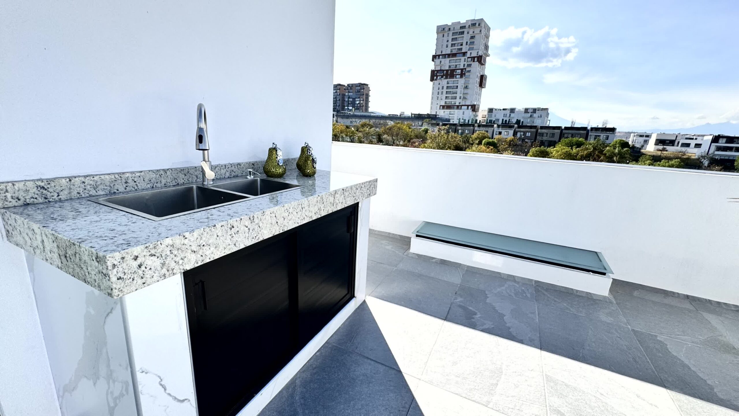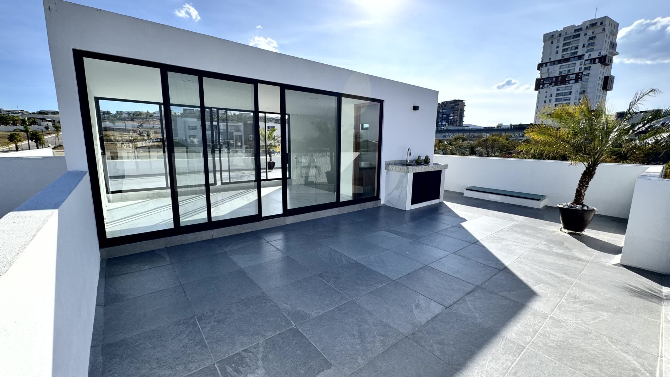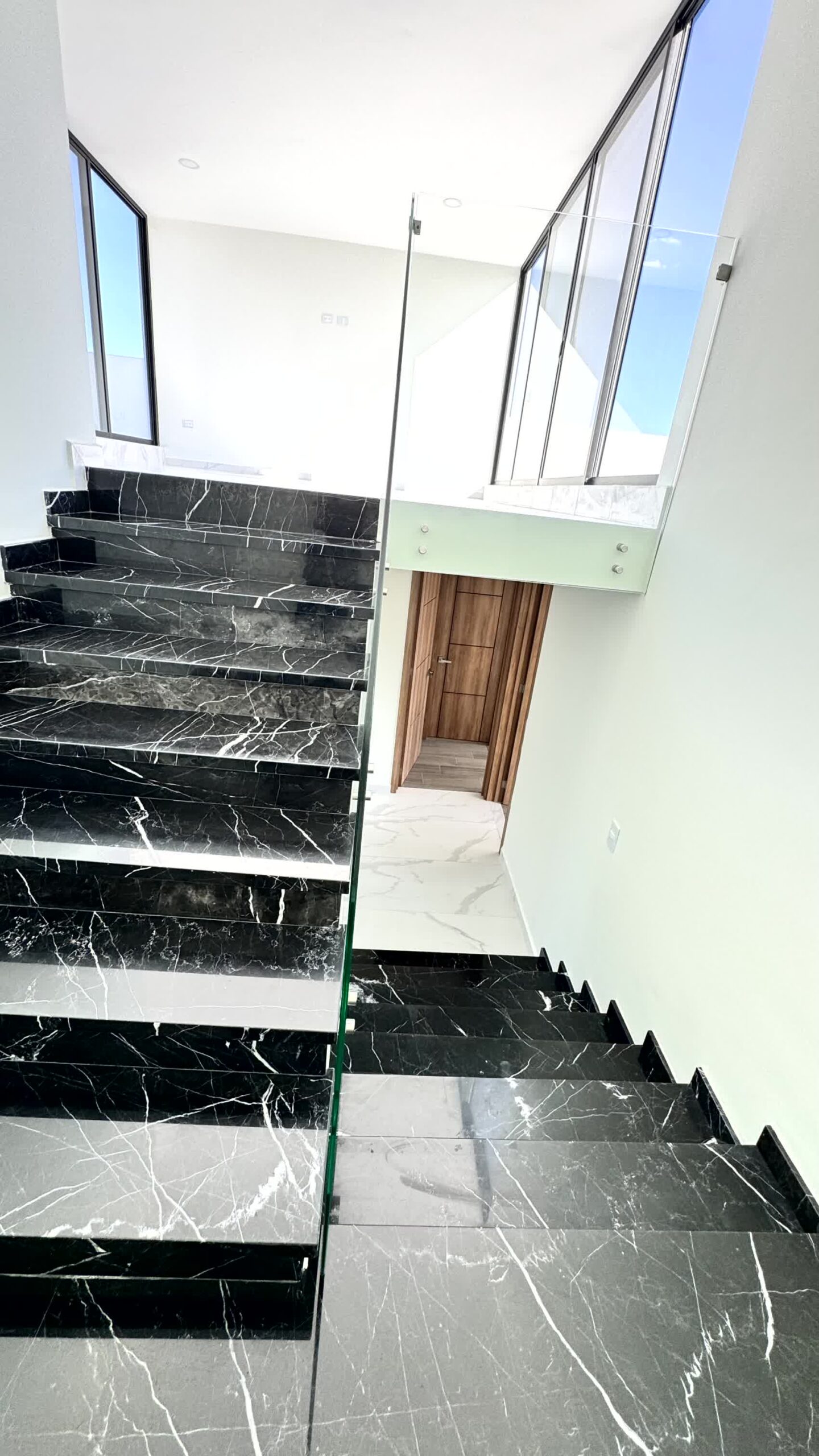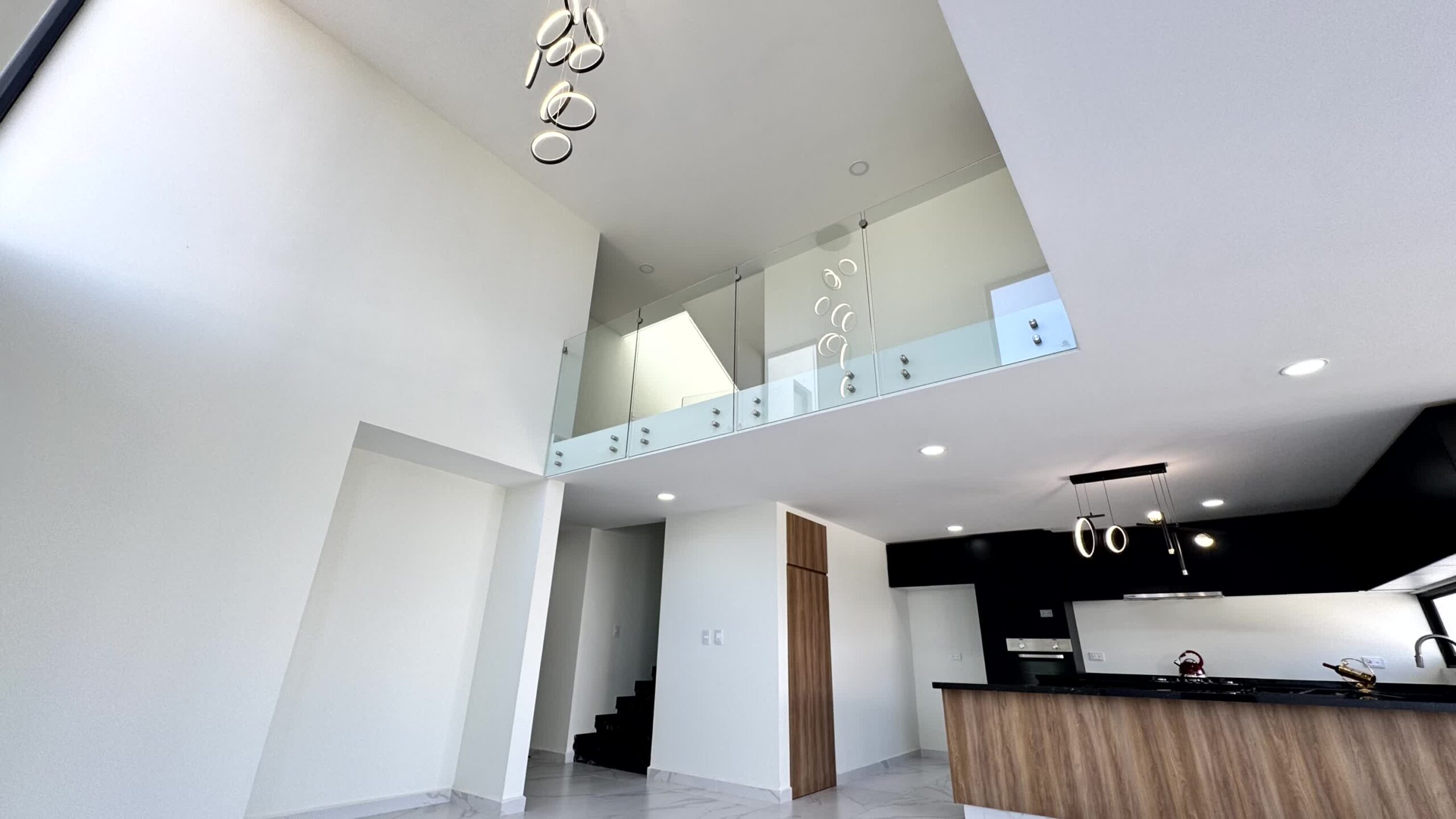 Esta casa tiene un diseño increíble y cuenta con sala doble altura, comedor, jardín, cuarto de lavado, 4 recámaras (una en PB) y cada una con su baño, en total 4 baños y 2 medios baños, cochera para 2 autos y un roof garden doble.