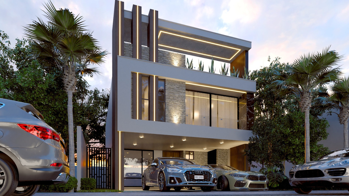 Primera Planta: Recámara principal con balcón, vestidor, y baño completocon doble lavamanos. 2 recamaras secundarias con terraza, c/u con bañocompleto, y sala de TV.
