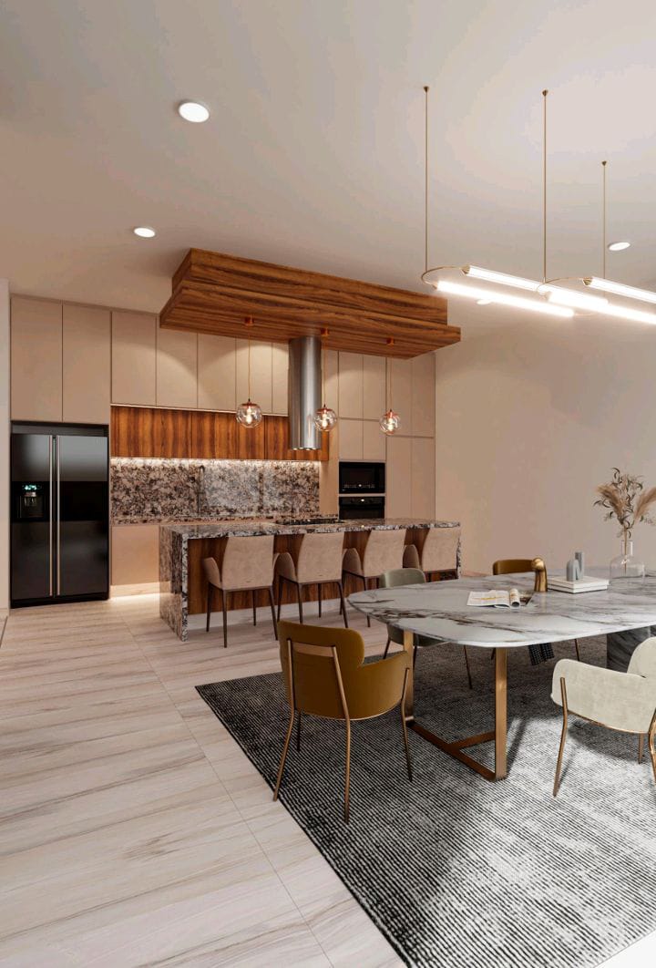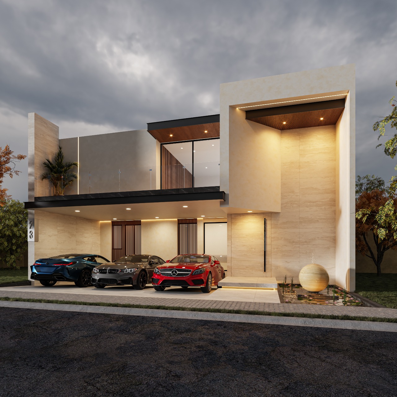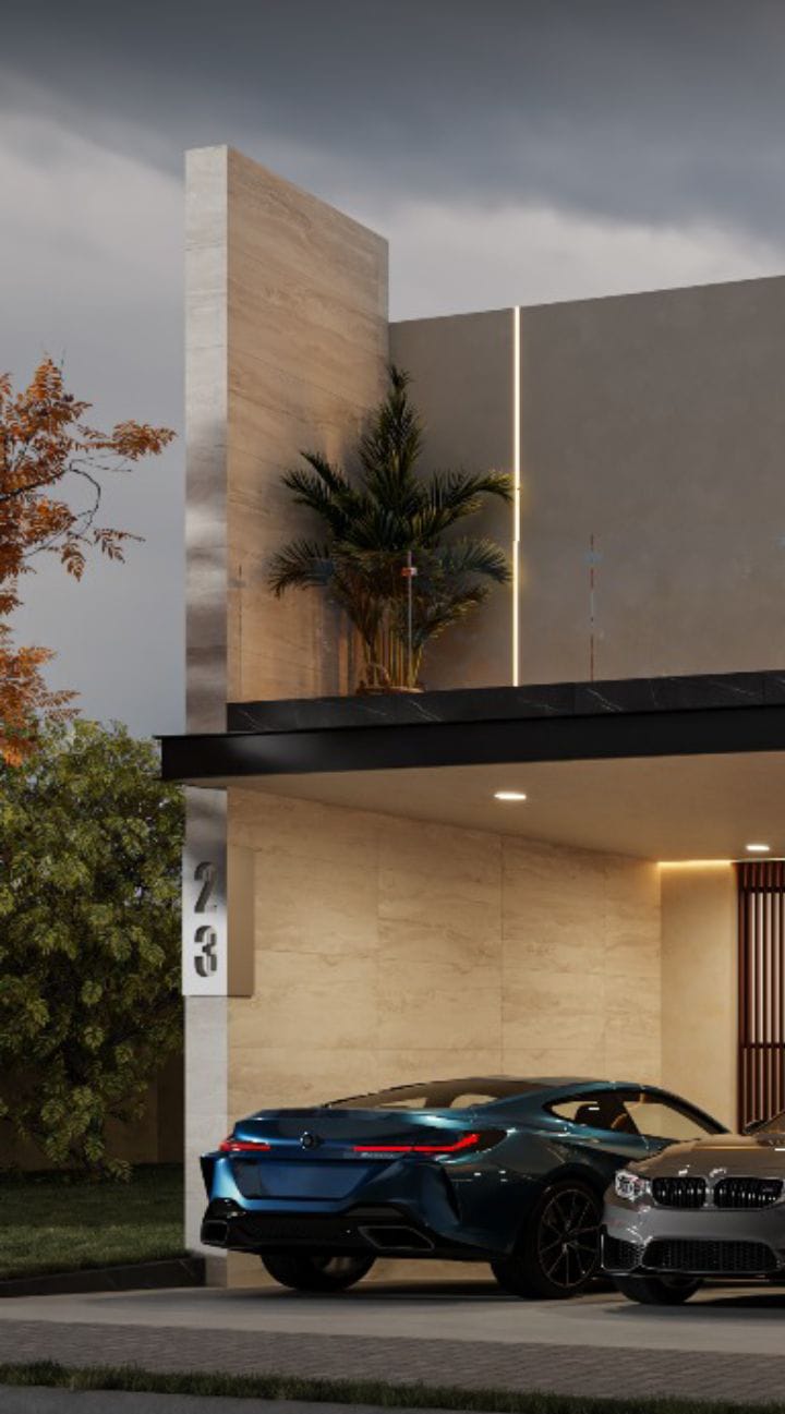 Cochera 3 autos. Jardín posterior de 60 m2. Sala con closet de usos múl ples. Área de escalera con muros chapa de encino y domo de cristal. Recámara con baño completo y closet amplio que puede servir de estudio, gym o sala de cine. Medio baño de visitas. Cocina con isla y cuarto amplio de alacena con estanterías que se entrega con ex tintor para cocina tipo K. 60 m2 de jardín trasero (9×5.07). Terraza con barra de bar. Bodega para herramientas de jardinería y suavizador.