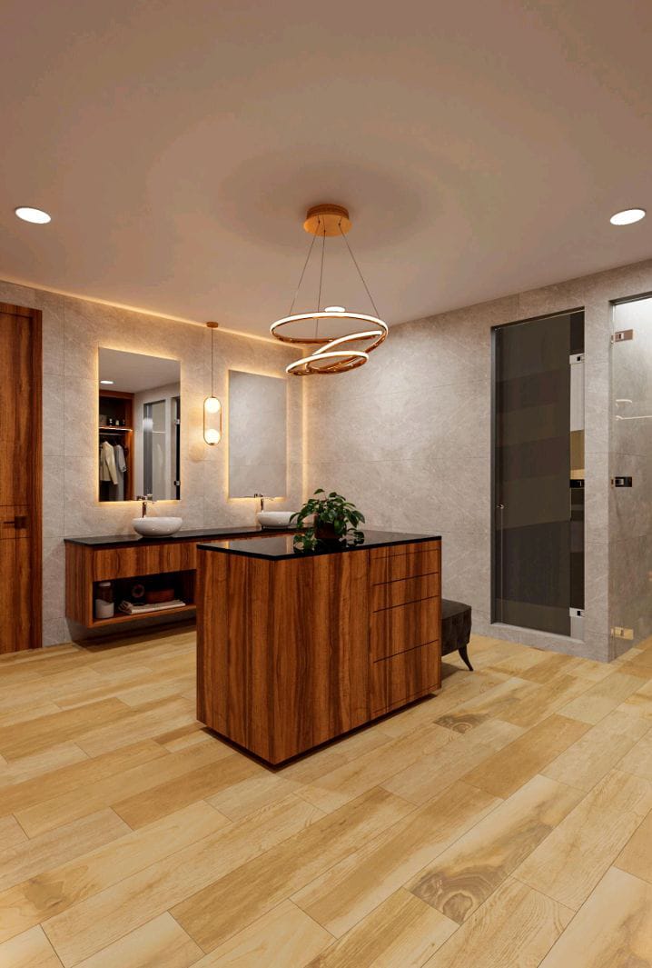 Sala de TV con mueble de TV Wall Recámara secundaria 1 con baño completo; Gran walking closet,, balcón techado con un domo de cristal y con barandal de cristal templado, instalaciones para mini split. Recámara secundaria 2 muy amplia con baño completo; más de 4.0 m de closet, escritorio, mueble de TV wall, instalaciones para mini split. Recámara principal con ves dor de 20 m2 con isla, banca y tocador. Iluminación led en vestidor y colgante led grande. Dos lavabos con cubierta de mármol. Cuarto de WC; área de regaderas con banca, tiene regadera de plafón y regadera con ajuste de altura cada una con instalación hidráulica independiente (pueden funcionar las dos al mismo tiempo). La recámara ene salida por cancel hacia un muy amplio balcón.