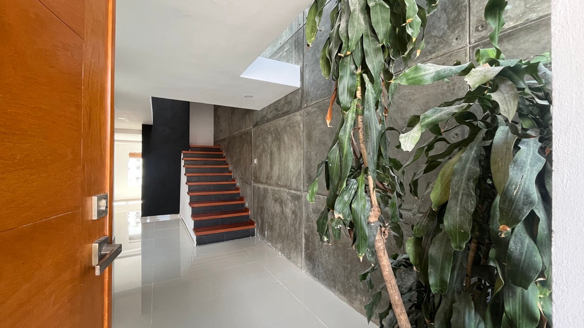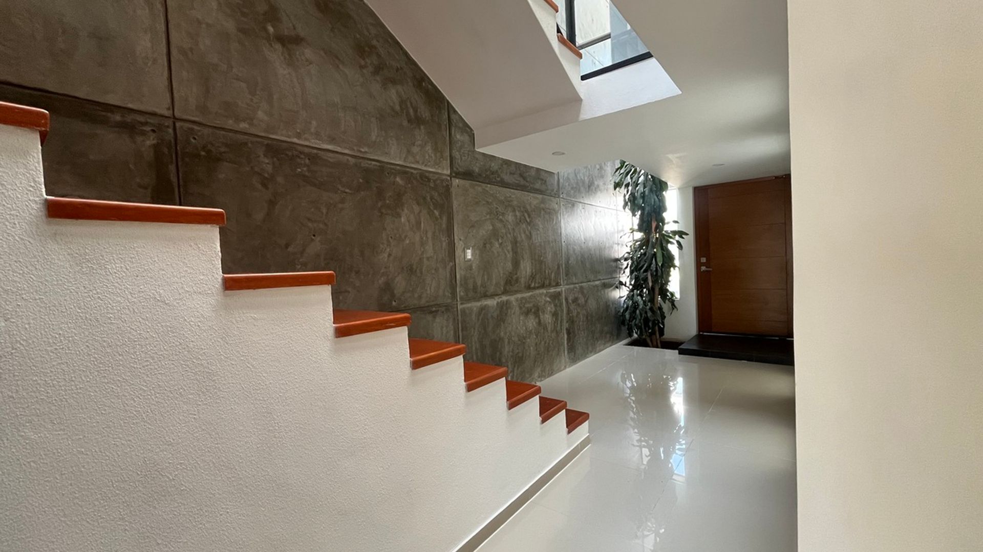 Esta casa cuenta con sala, comedor, cocina equipada y patio en planta baja, en el primer piso tres recamaras, la principal con vestidor y baño completo, las secundarias con closets y comparten baño completo, living room con roof garden y jacuzzi.