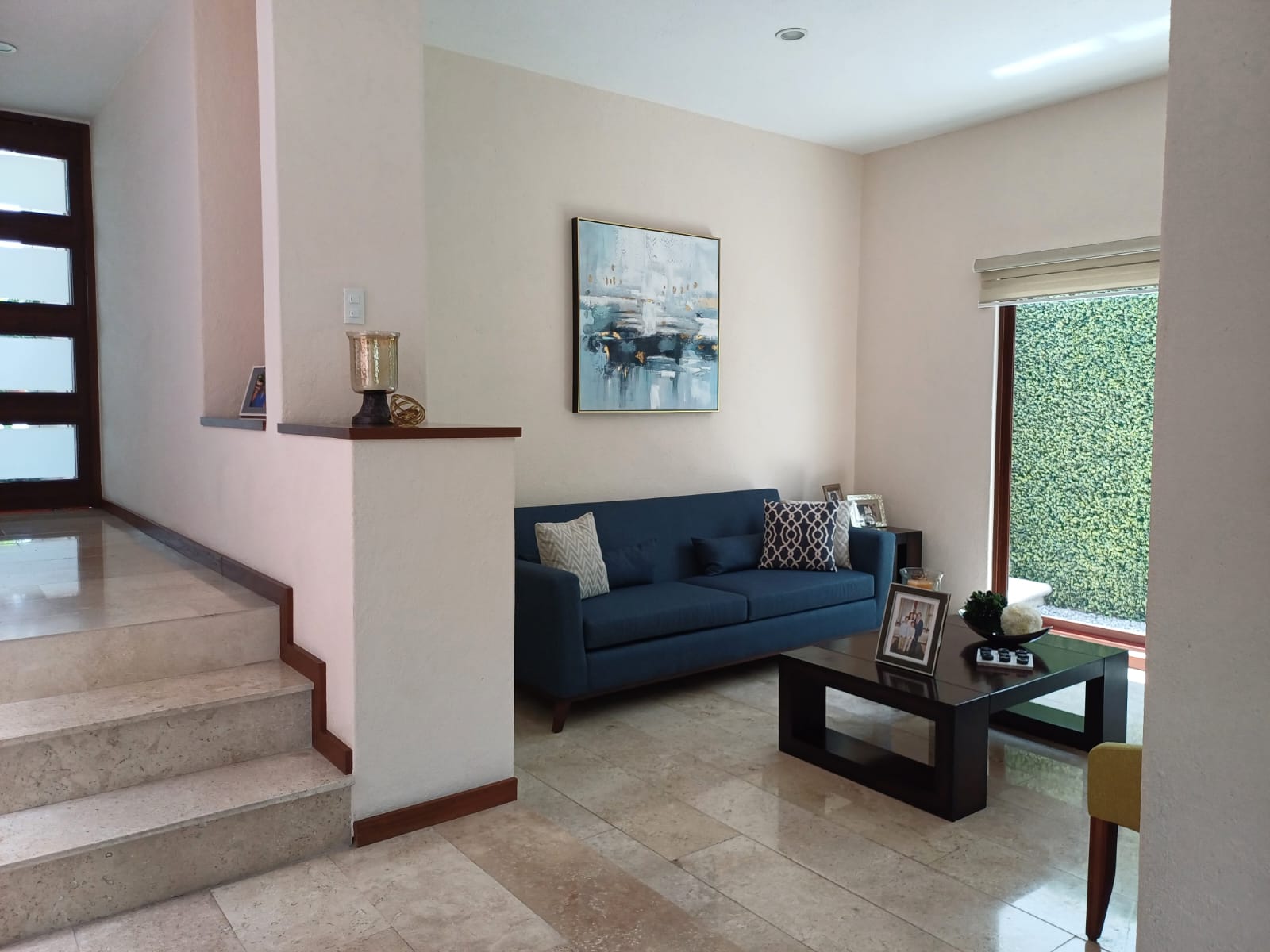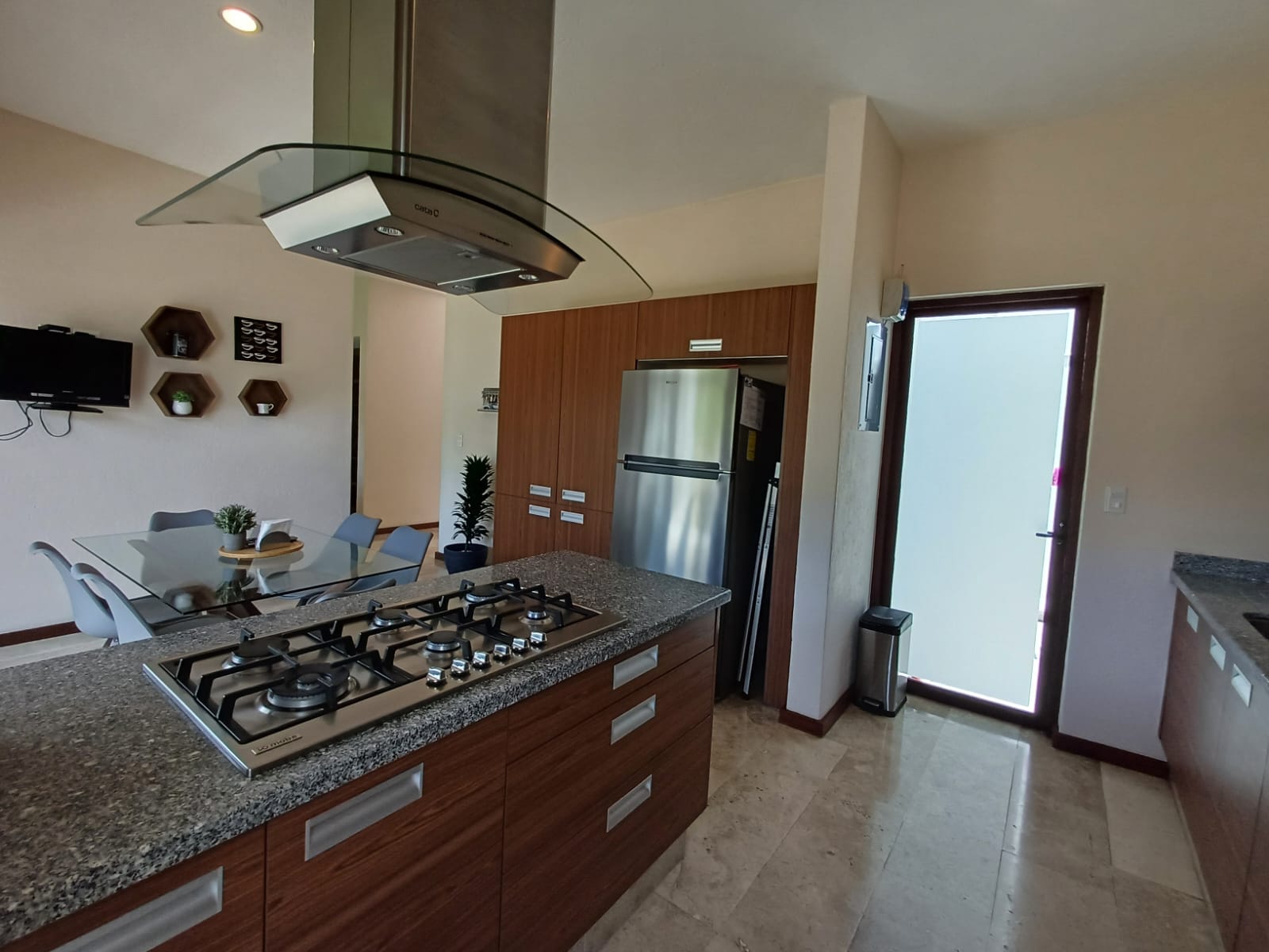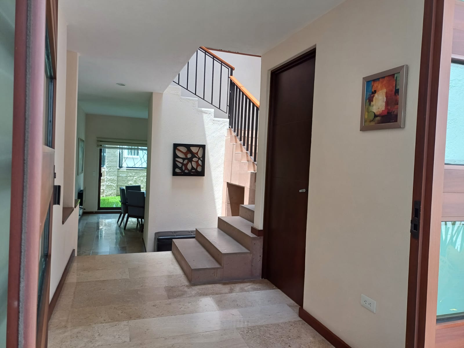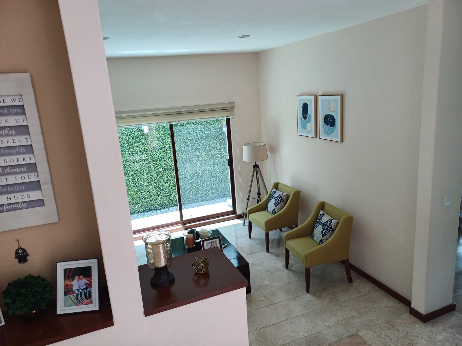 Amplia sala de TV, 3 recamaras con vestidor y baño completo y 2 con techo acabado de madera, en la recámara principal un estudio o Sala de TV.