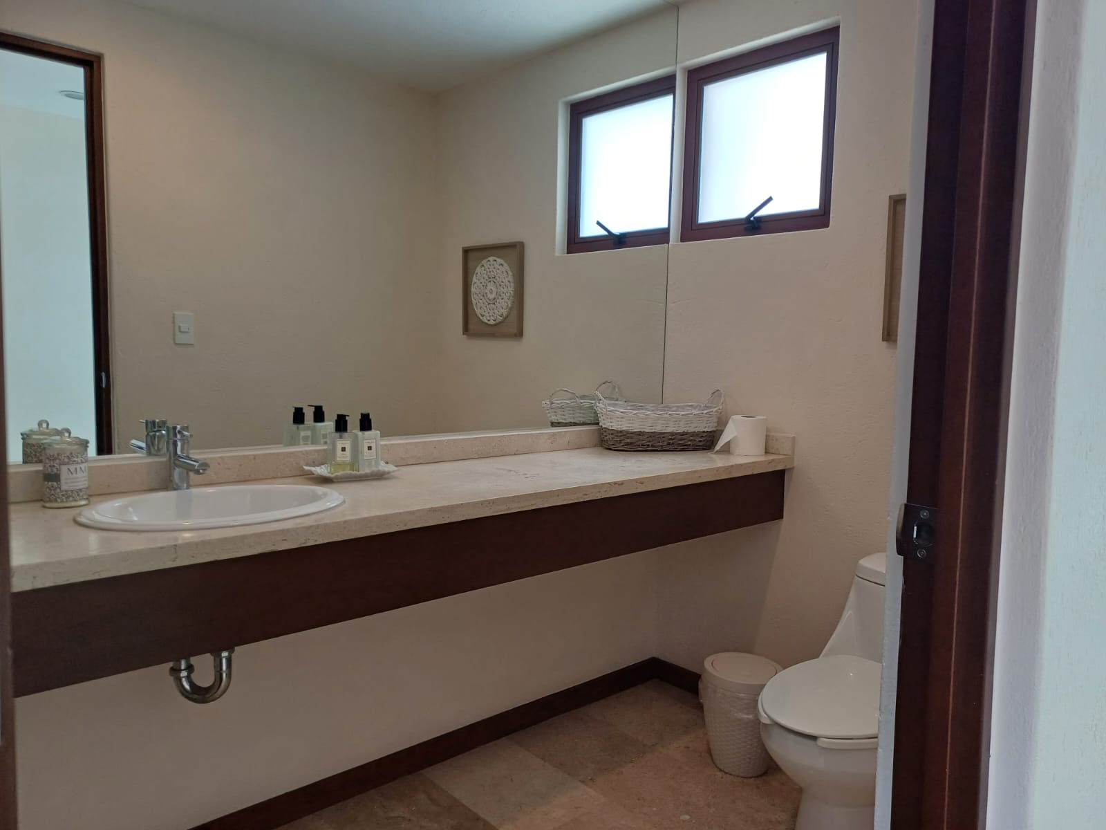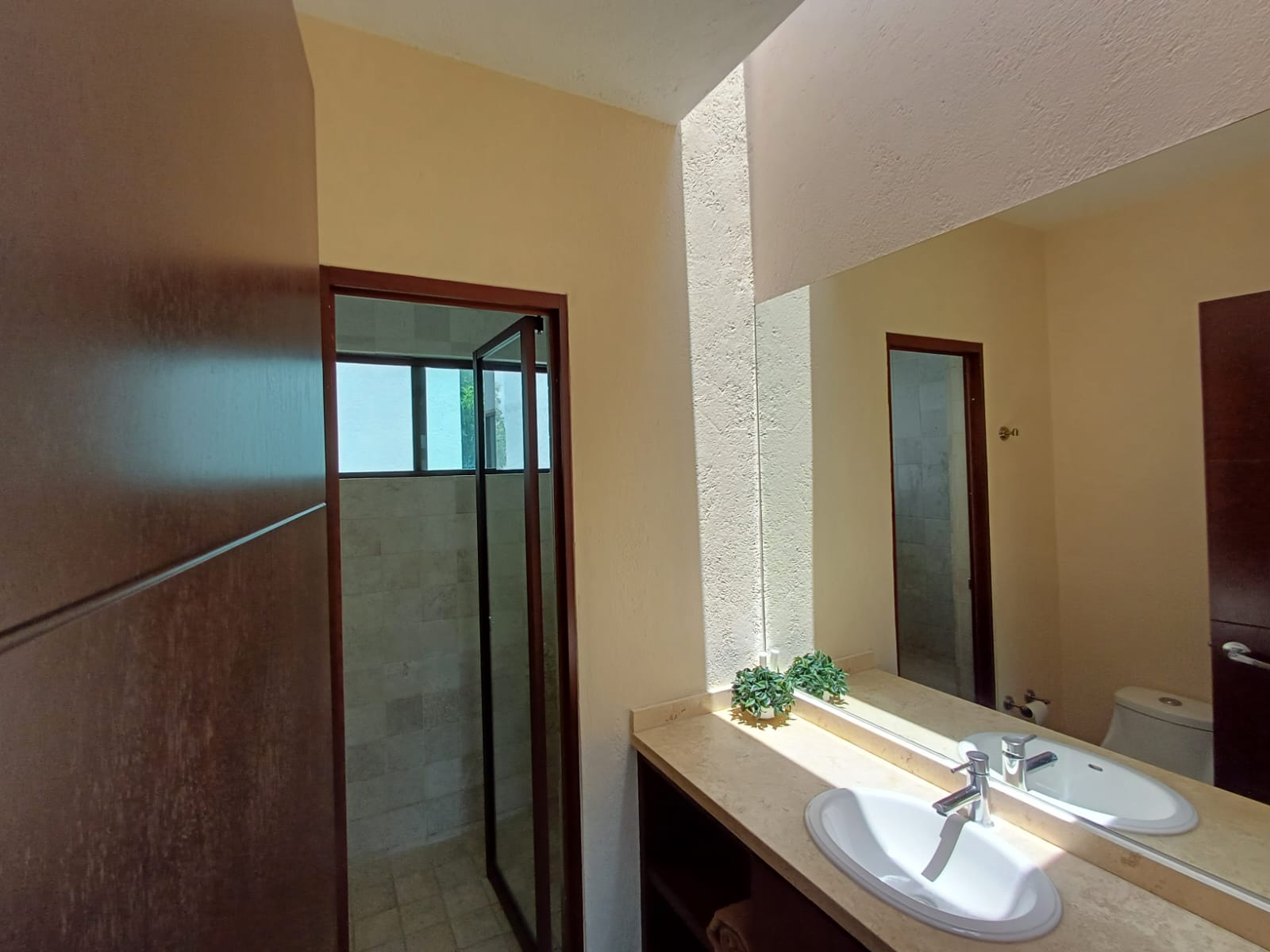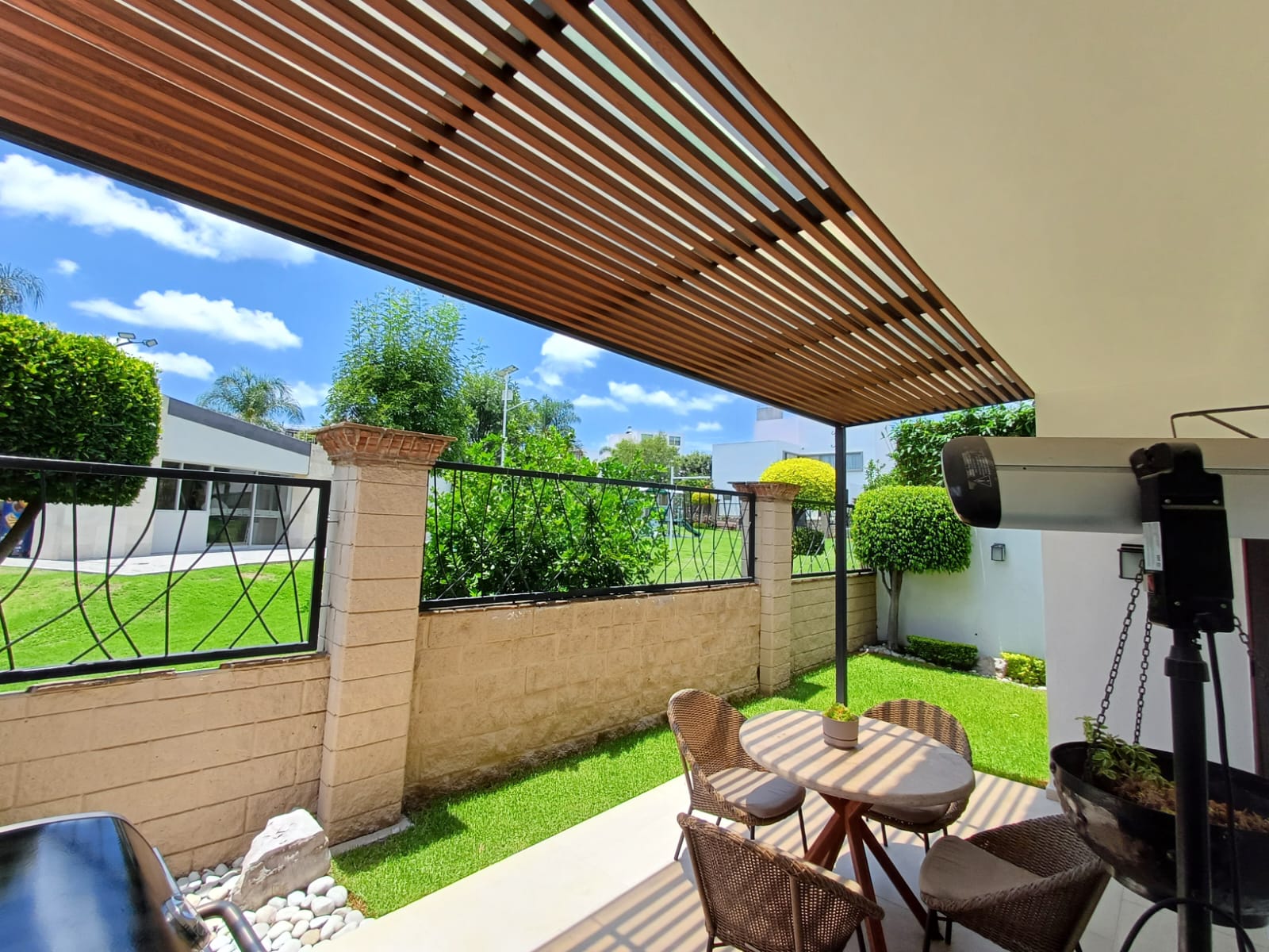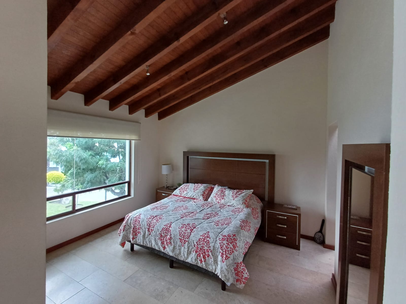 Amplia sala de TV, 3 recamaras con vestidor y baño completo y 2 con techo acabado de madera, en la recámara principal un estudio o Sala de TV.
