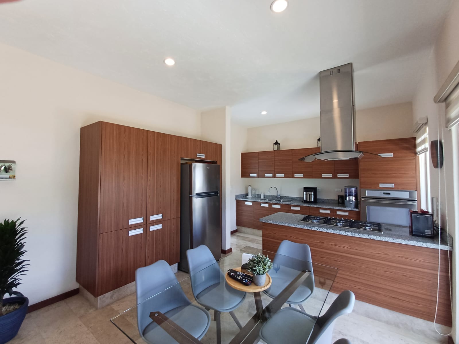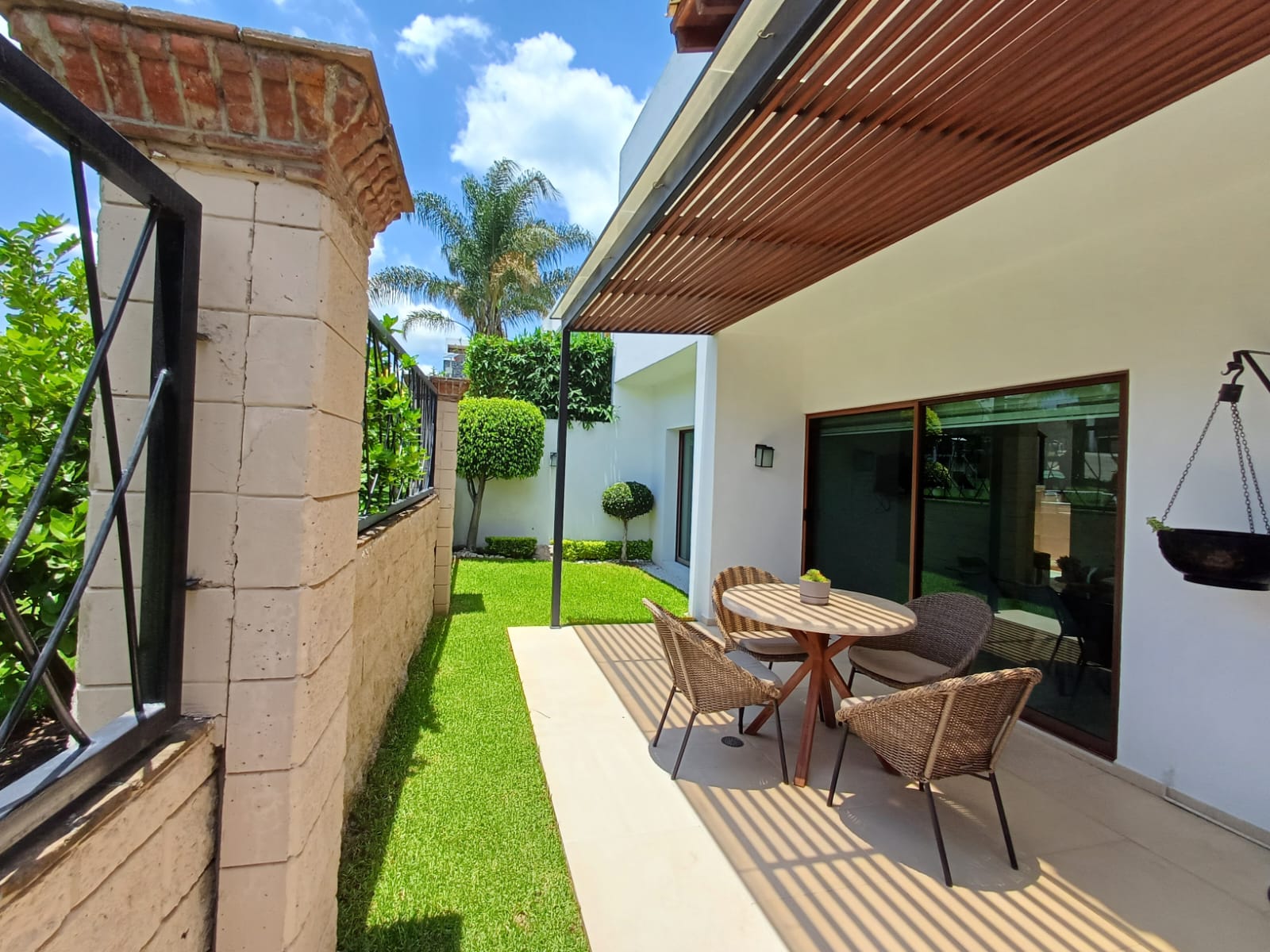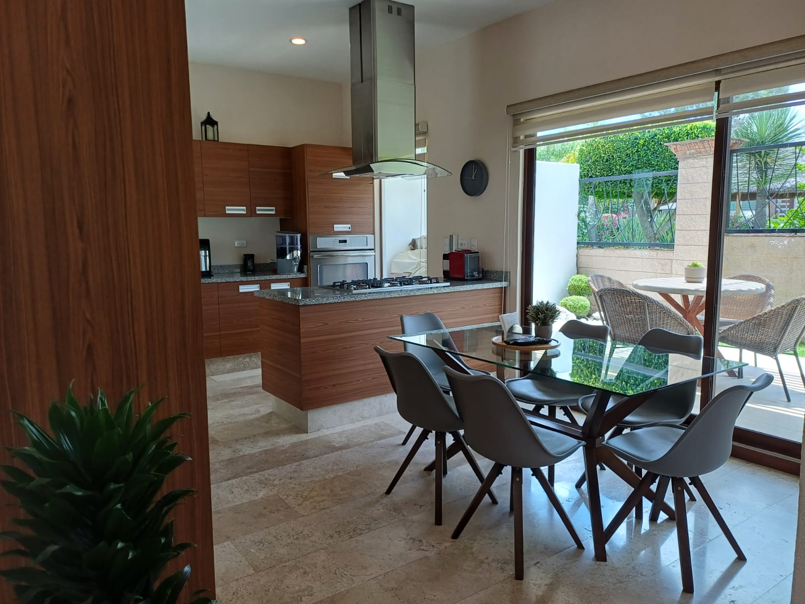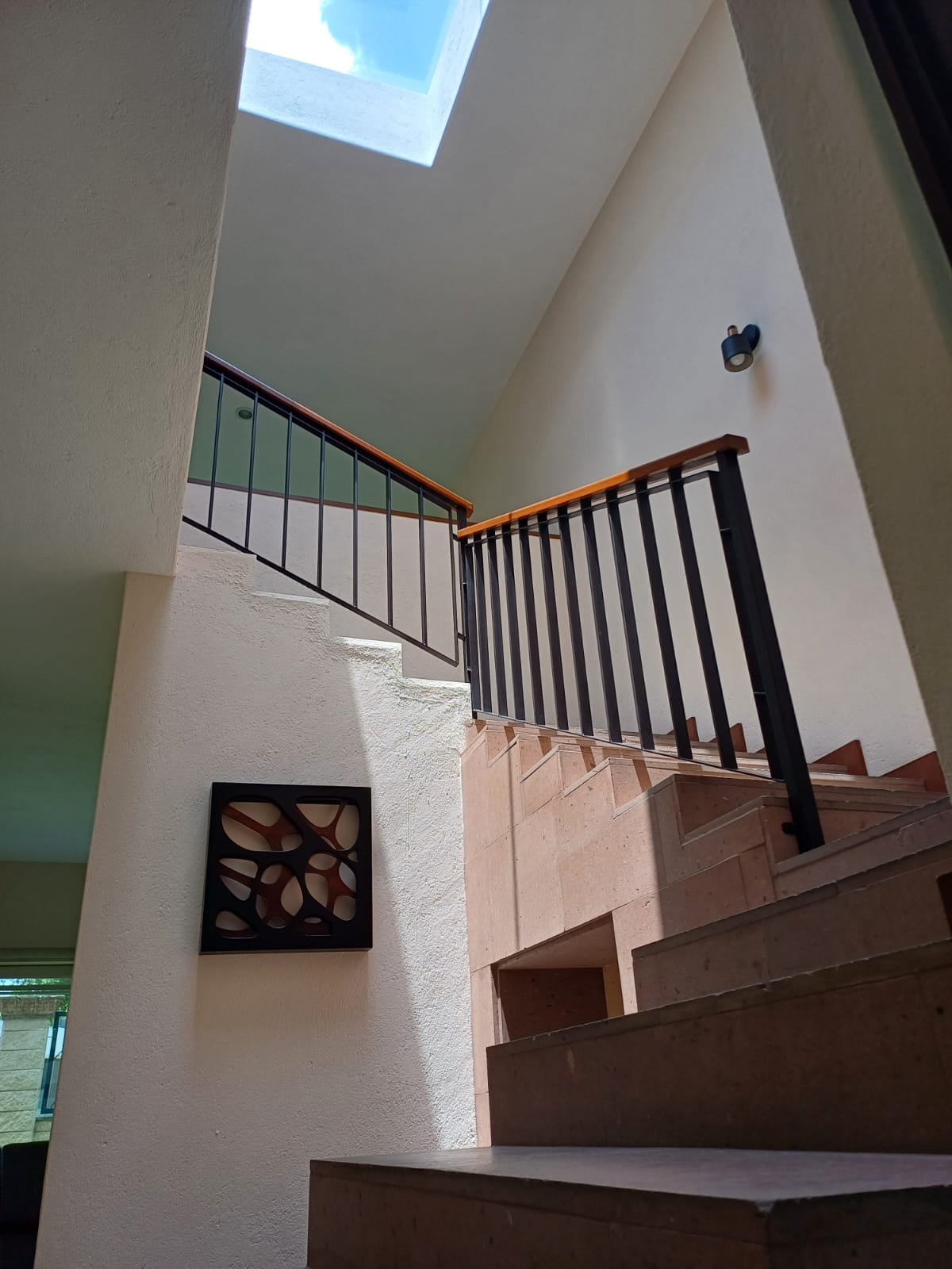 Amplia sala de TV, 3 recamaras con vestidor y baño completo y 2 con techo acabado de madera, en la recámara principal un estudio o Sala de TV.