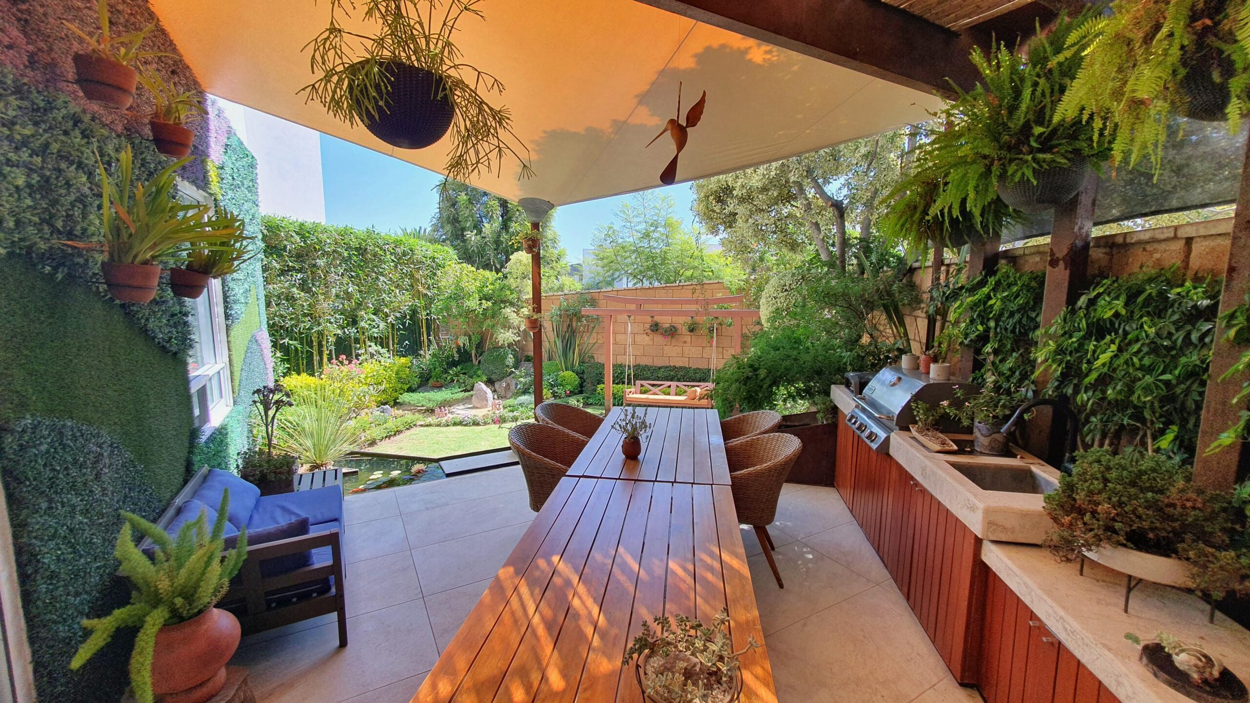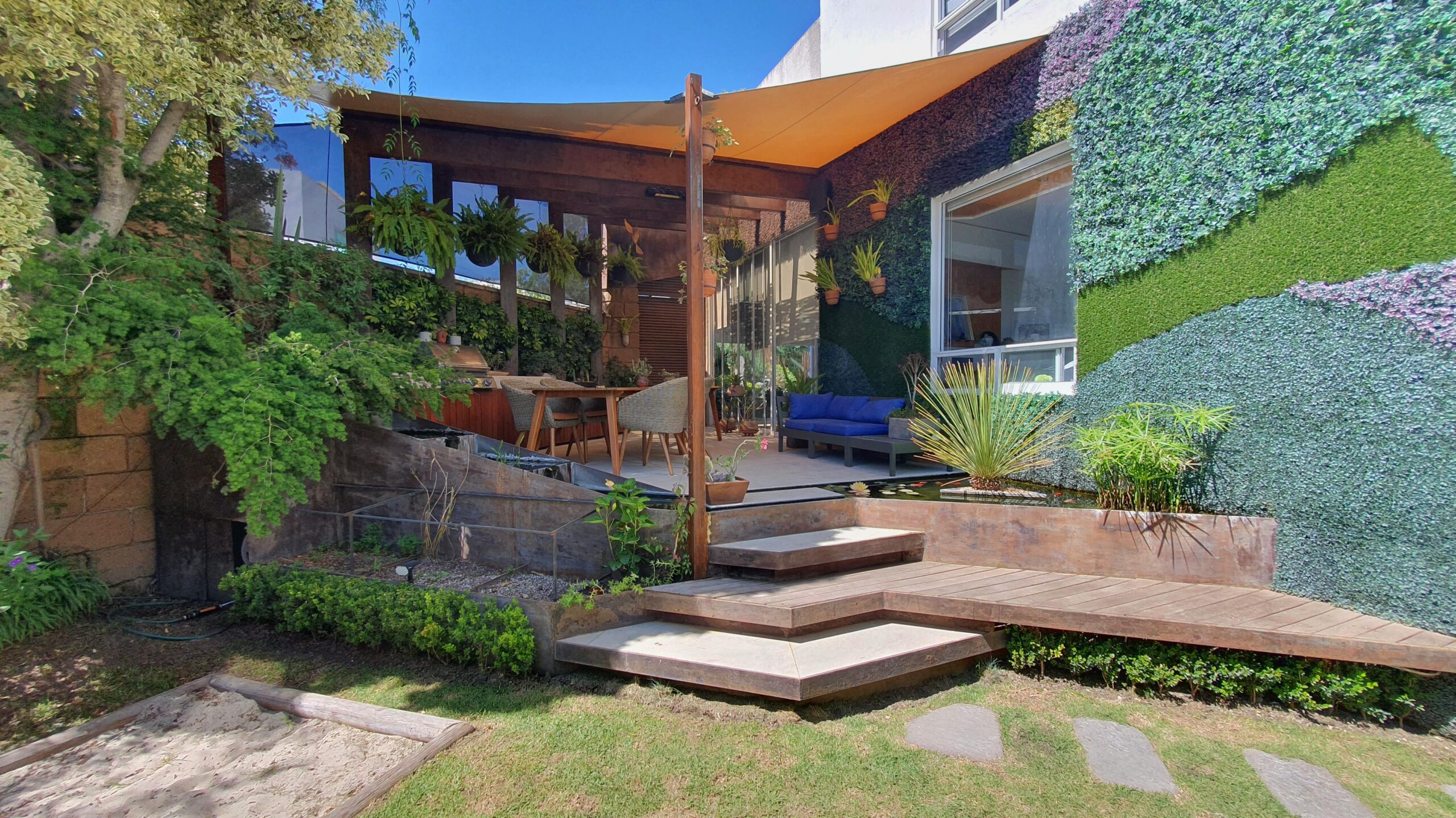 Cuenta con dos jardines con cascadas y sistema de riego automatizado.
