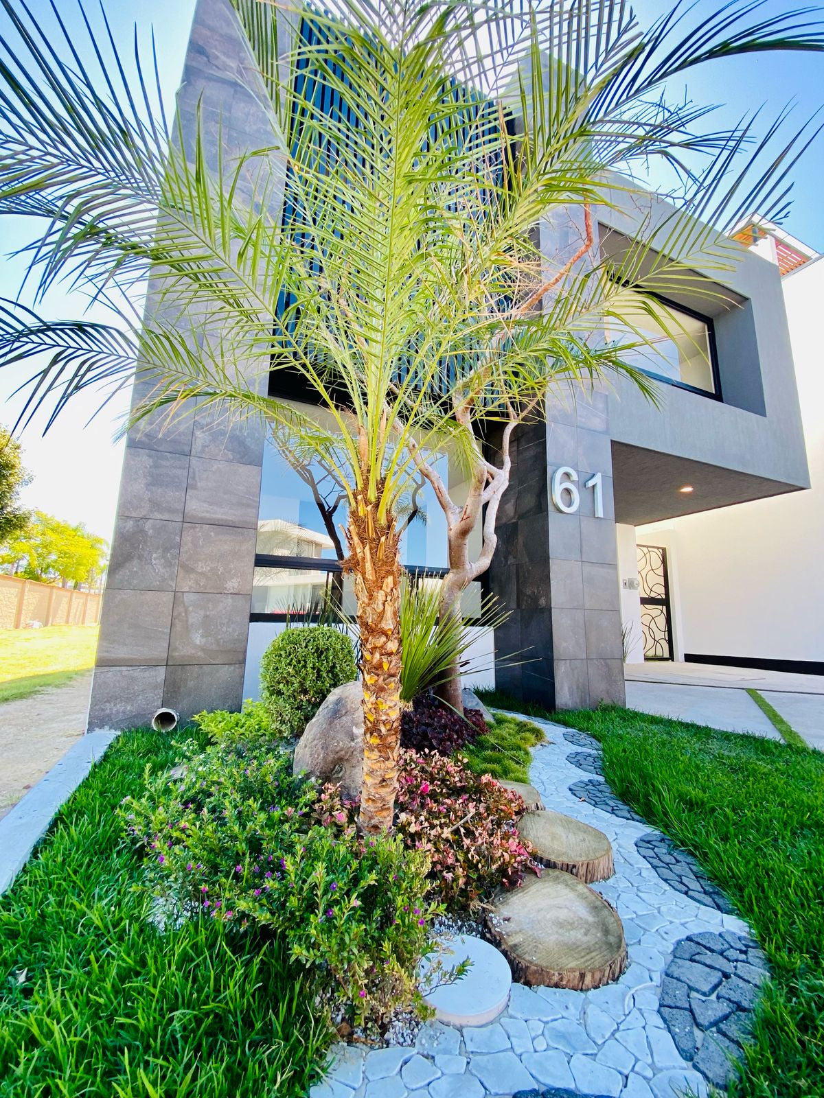 Esta casa cuenta con cochera para 2 autos, sala, comedor, cocina, jardín, 4 recámaras cada una con baño, una recámara en PB, en total 6 baños, roof garden, cuarto de lavado y cuarto de servicio.