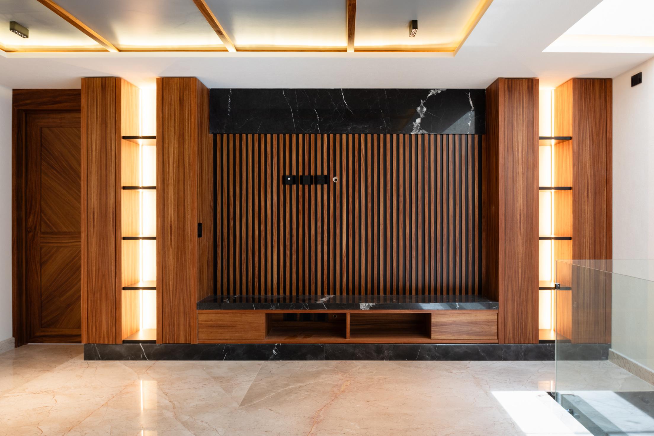 Primer Nivel: 1 Recámara Master Suite con amplio vestidor y baño completo con doble ovalan y terraza, 2 recámaras con vestidor y baño completo, Sala de TV con iluminación natural, Estudio Home Office, cuarto de blancos.