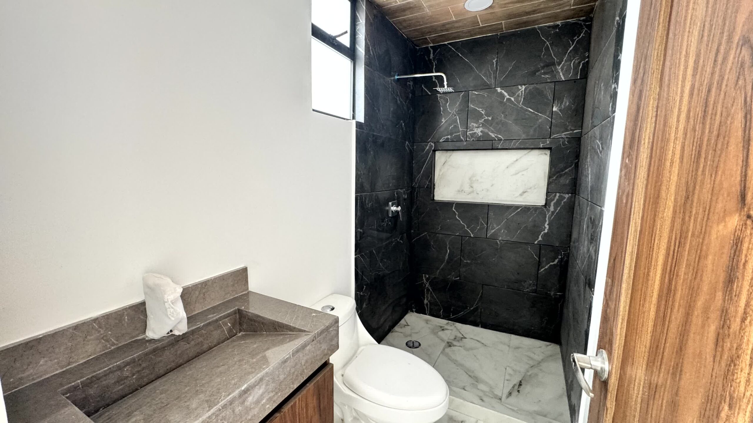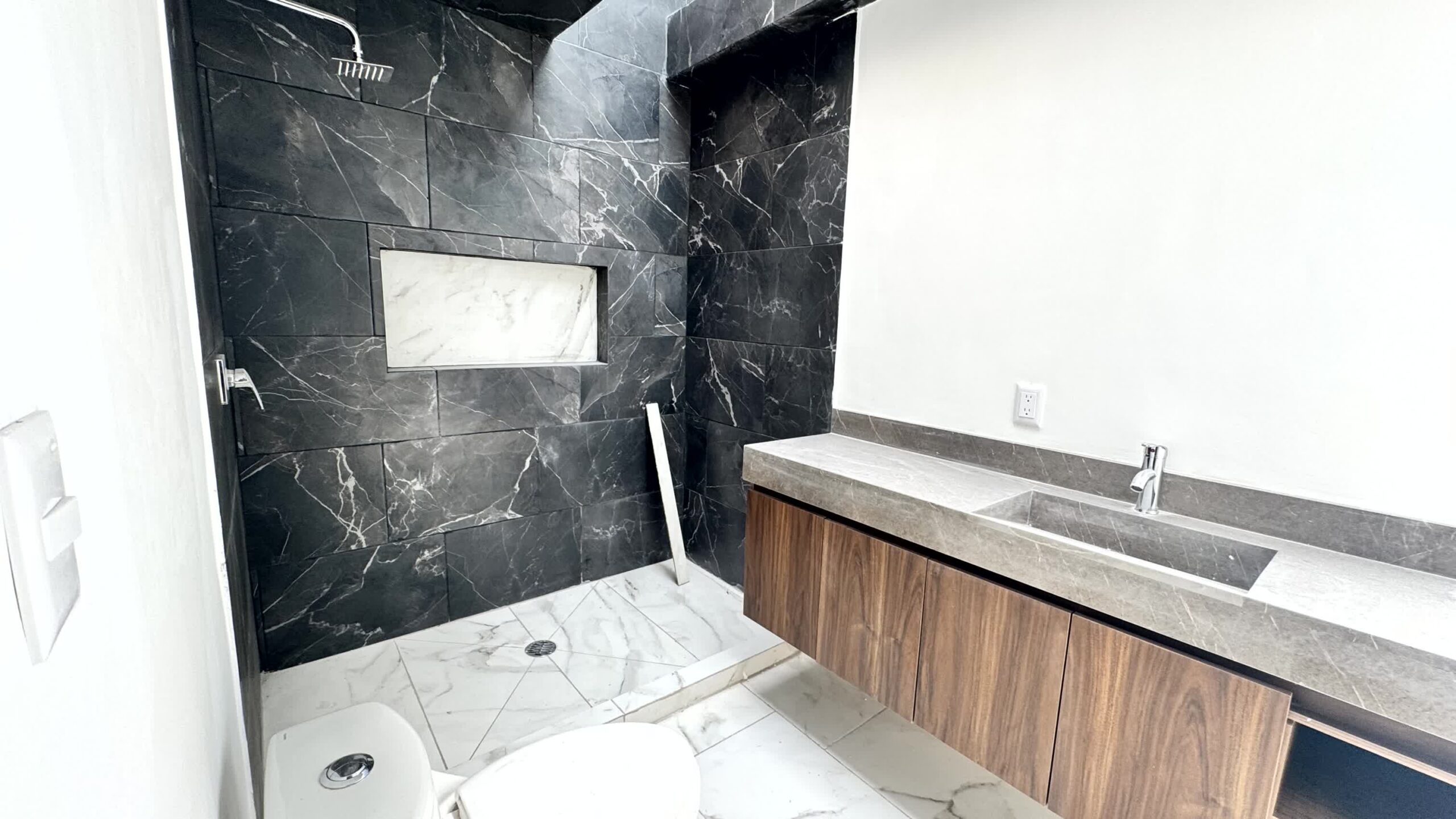 1er Nivel: Recámara principal con vestidor y baño con tina, 2 recámaras secundarias con clóset y baño.