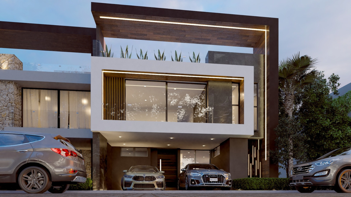 Planta Baja: Cochera para 2 autos semi-techada, Cuarto de Máquinas, cisterna 10 mil litros, Sala comedor, 1/2 baño, Cocina abierta totalmente equipada con torre de hornos, lavavajillas, alacena, jardín amplio y cuarto de lavado.