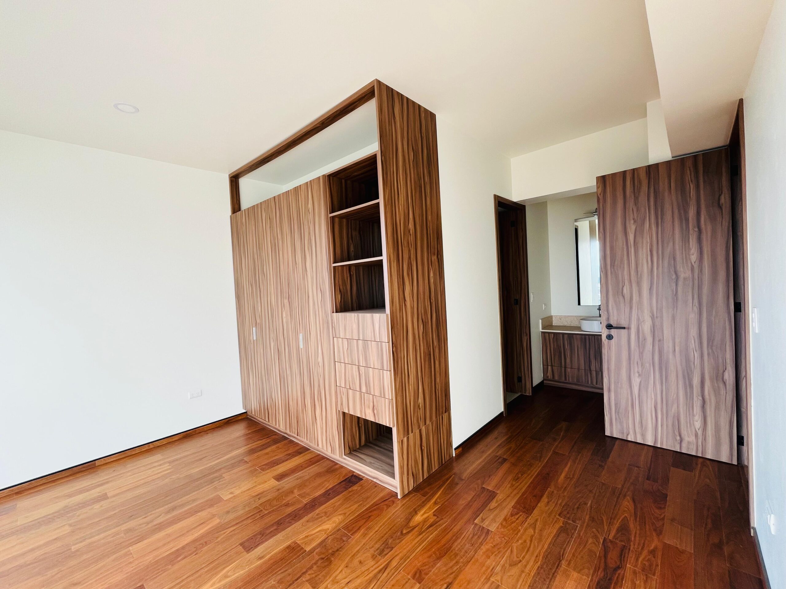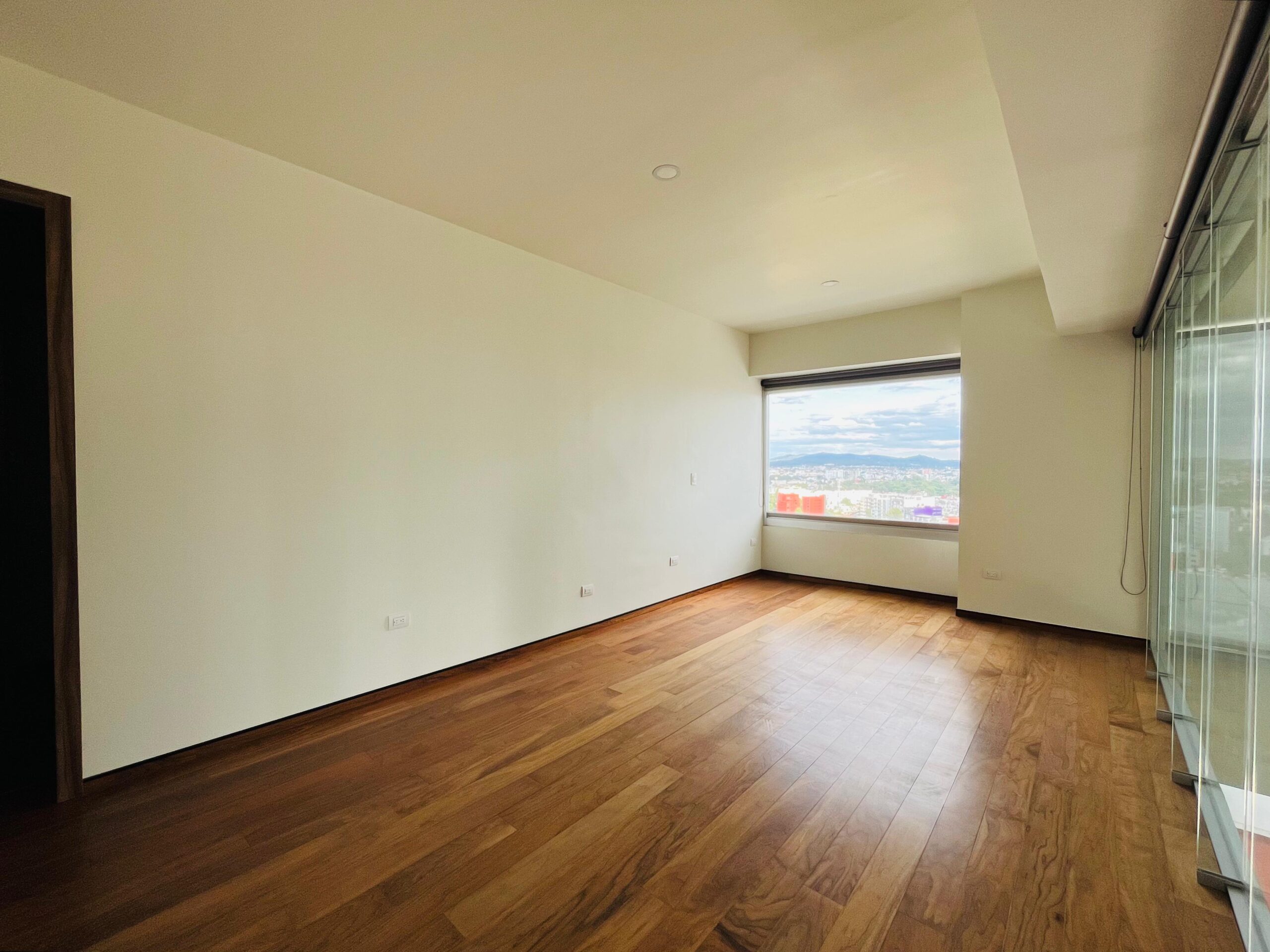 Recámara principal con vestidor, baño completo y vistas a la ciudad.