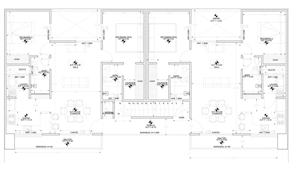 – Baños completo compartido con recámara y área social